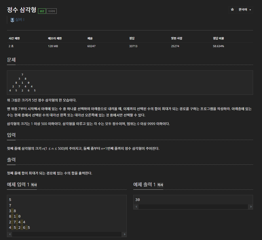 // 배열의 마지막행 - 1번째부터 돌면서 각각 max값을 dp 배열에 저장함