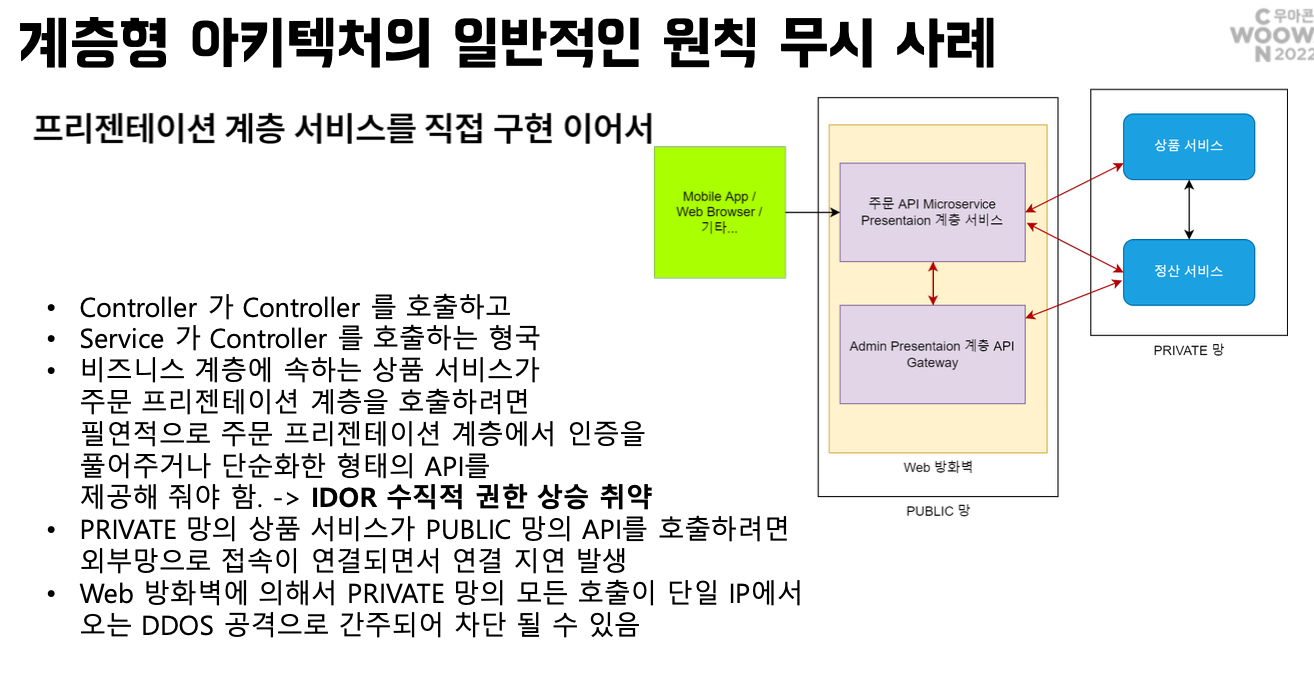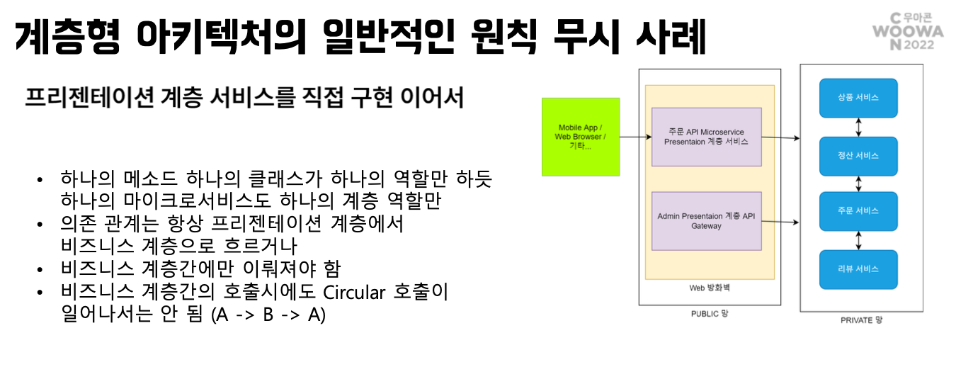 - 계층형 아키텍처의 일반적인 원칙 위반 사례