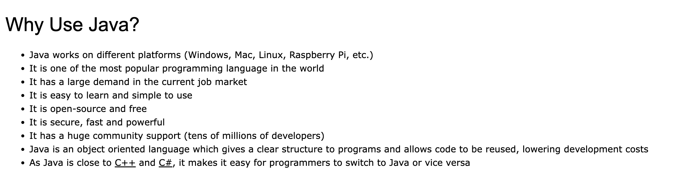 해당 사진은 W3C School Java Intro에 나오는 내용이다.
