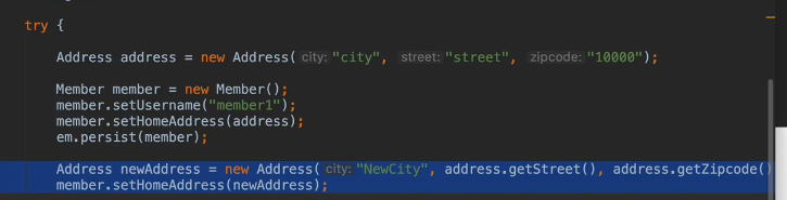 - 수정자 없이 불변객체의 값을 변경하고 싶을 경우 새롭게 해당 불변 객체를 생성하여 엔티티에 setting 해줘야 함