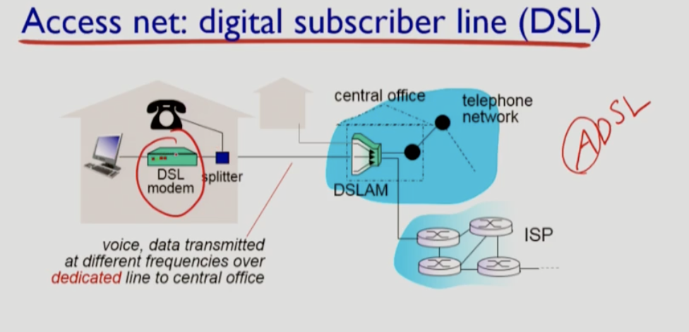 - data는 DSL phone line to Internet