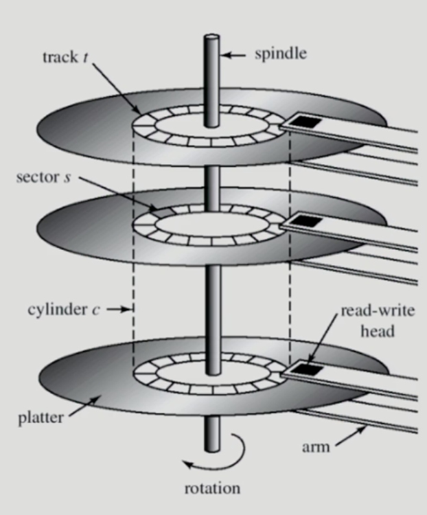 - 탐색시간(Seek time) : 헤드를 해당 트랙(실린더)으로 움직이는데 걸리는 시간