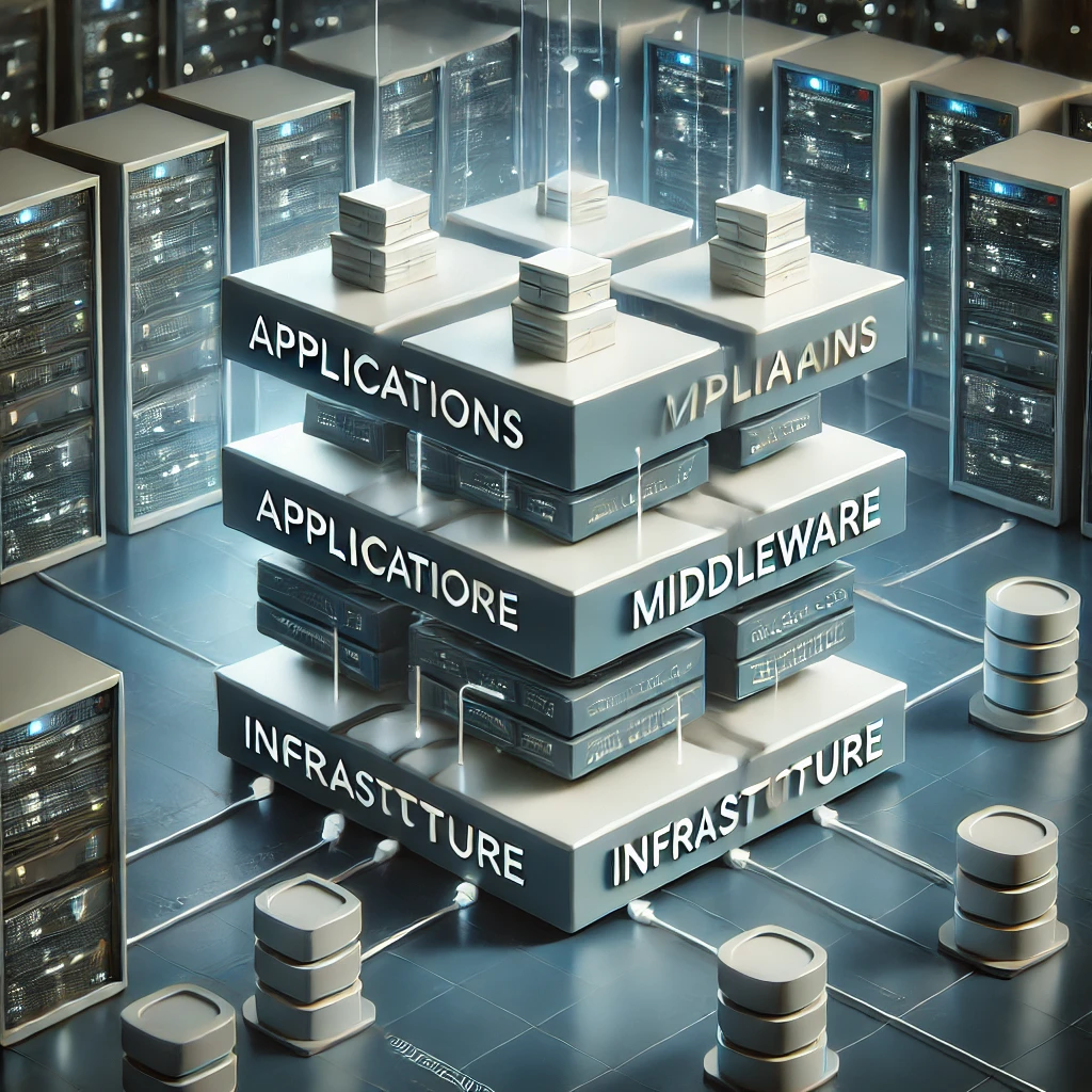 미들웨어는 인프라와 애플리케이션 사이에서 중요한 역할을 합니다. 인프라 수준에서는 운영체제, 네트워크, 데이터베이스와 애플리케이션 간의 연결을 지원하며, 애플리케이션 수준에서는 상호작용하는 여러 애플리케이션 간의 통신과 데이터 교환을 지원합니다. 예를 들어, 데이터베이스와 웹 서버 사이의 데이터 전송을 원활하게 해주는 역할을 합니다.