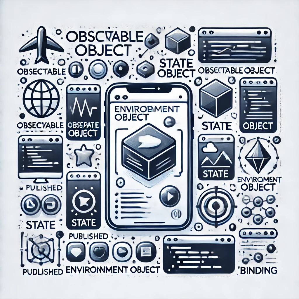 다음은 ObservableObject, StateObject, Published, State, Binding, 그리고 EnvironmentObject를 함께 사용하는 예제입니다.