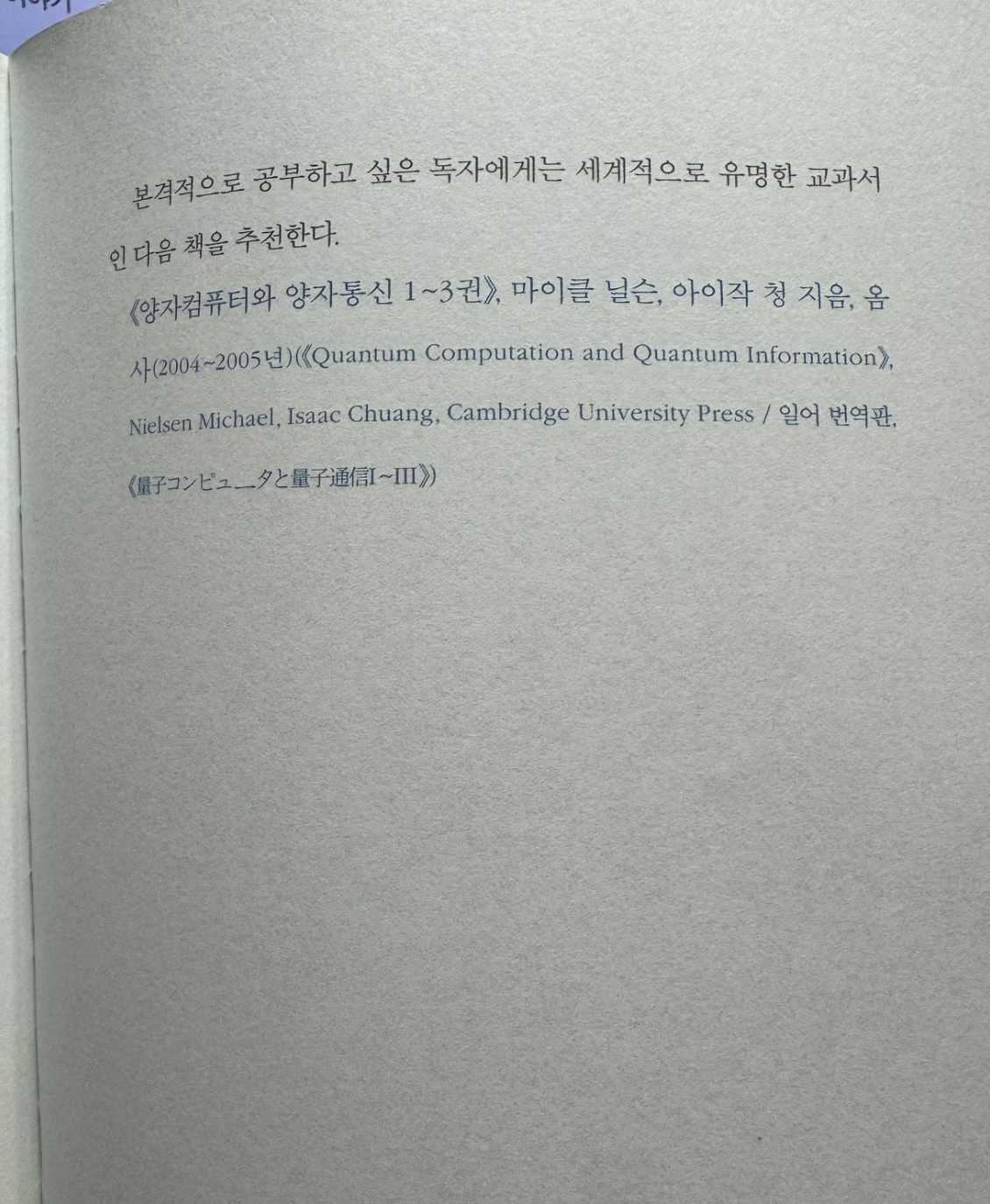 누구에게든, 이 책은 ‘양자컴퓨팅’의 길잡이 역할을 충분히 해줄 것이라 믿어 의심치 않는다.
