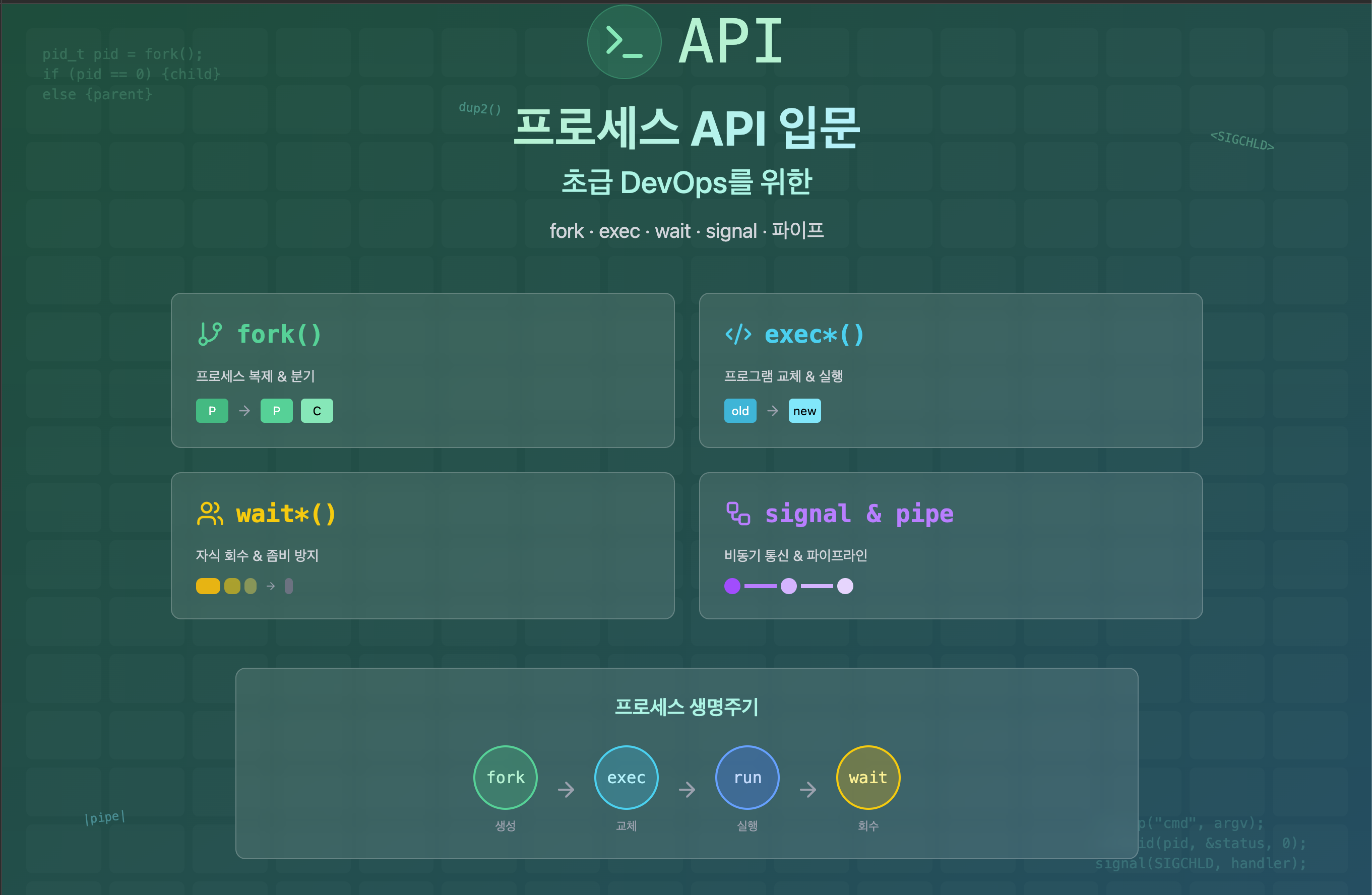 - 프로세스 생애주기 통제는 CI 러너/에이전트/워커의 안정성·관측성 핵심.