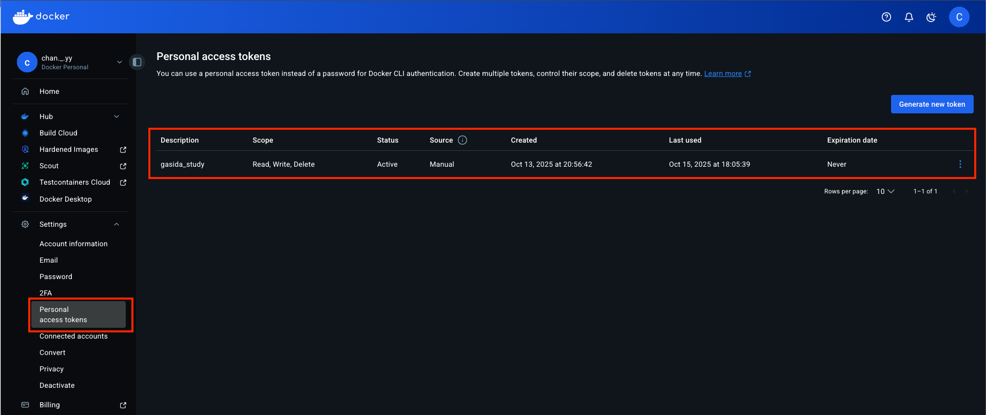 export DOCKER_TOKEN='YOUR_DOCKER_PAT' # 실제 발급 토큰으로 교체
