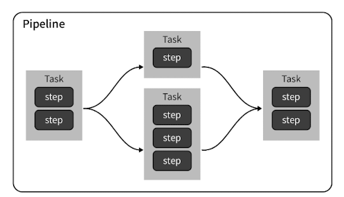 - Workspace: Task 간에 공유되는 파일 시스템(PVC 등). 예: 첫 Task가 소스 코드를 체크아웃해 놓으면 다음 Task가 그 디렉터리에서 빌드를 수행