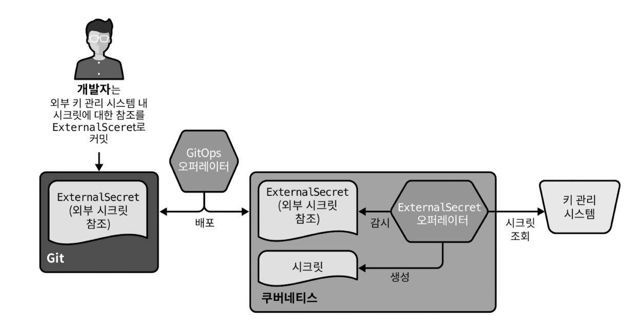 - Secret을 Git에 저장하지 않고 AWS Secrets Manager, GCP Secret Manager, Vault 등 외부 저장소에서 직접 불러온다.