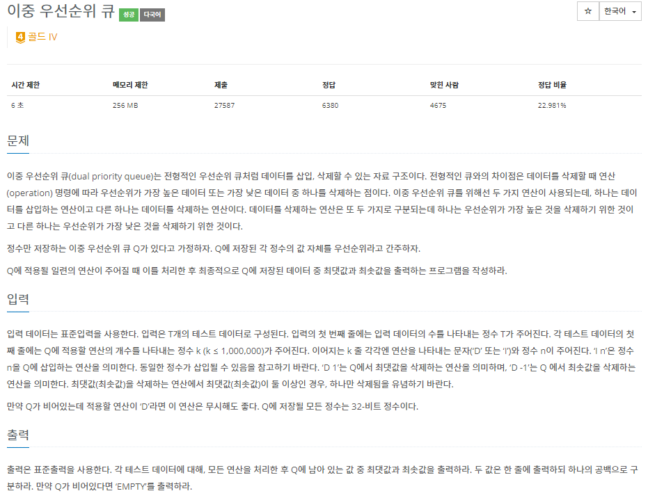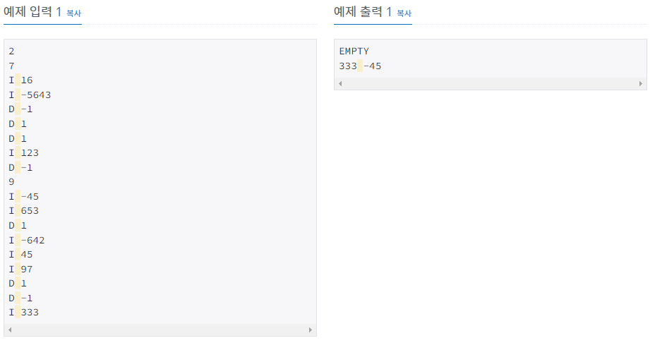 6. 추가적으로 추가, 삭제한 수들을 관리할 map이 필요하다 -> 이 부분 때문에 삽질함 문제명이 이중 우선순위큐라 오로지 우선순위 큐로만 풀고자 했었다 ㅜㅜ