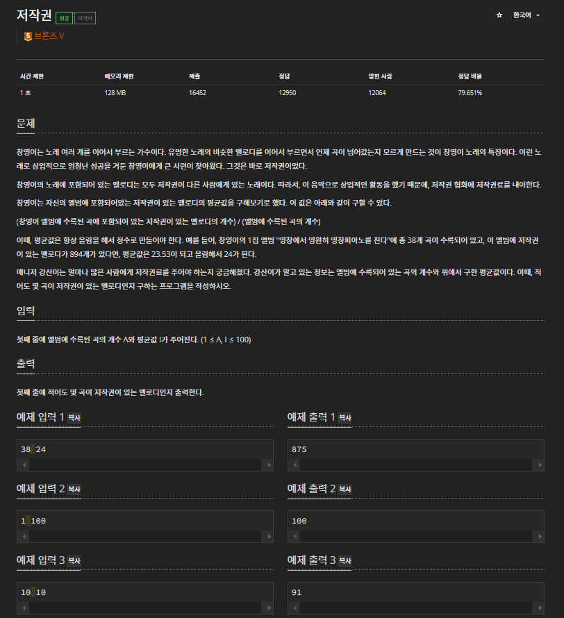 브루트포스로도 풀 수 있고 수학적 논리로도 풀 수 있다. 쉽게 보면 쉽고 어렵게 보면 어려운 문제일 수 있다.