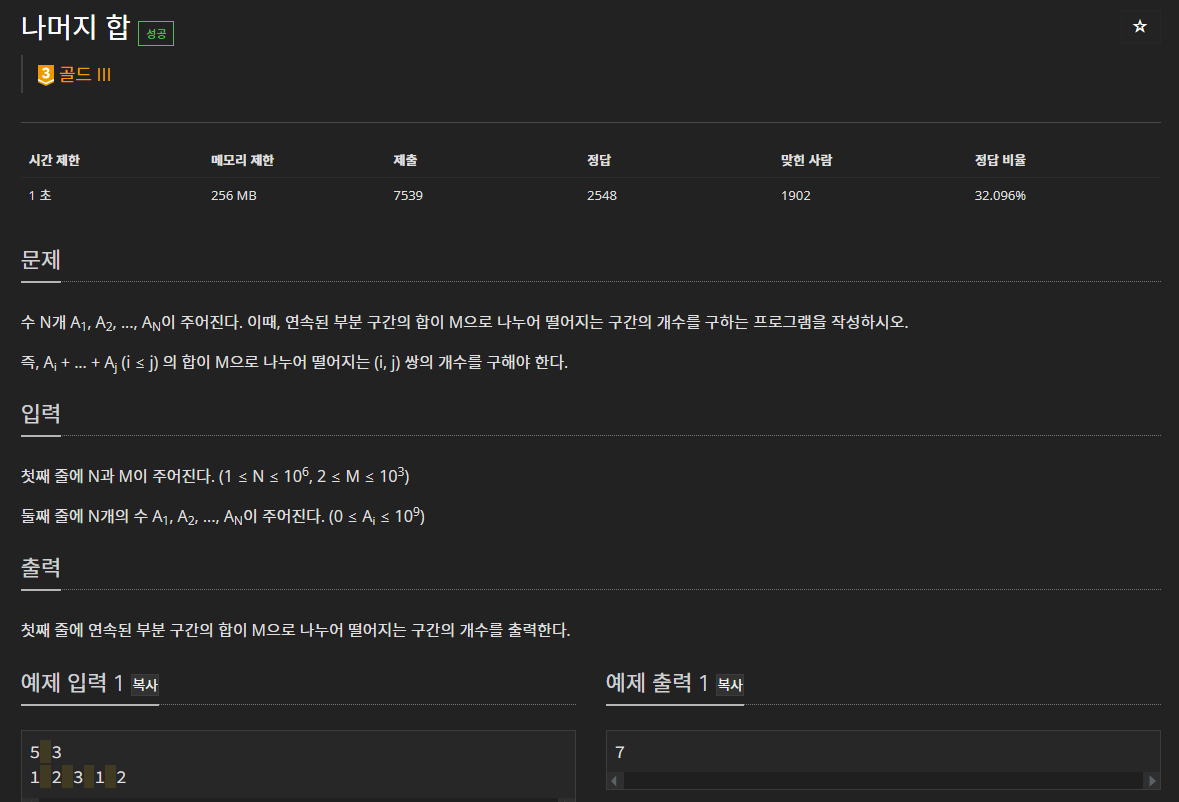 4. 나머지 0의 경우 그 자체로도 답이 되고 서로 빼서 구간합 만든 것도 답이 되므로 카운팅할 때 신경 써야함