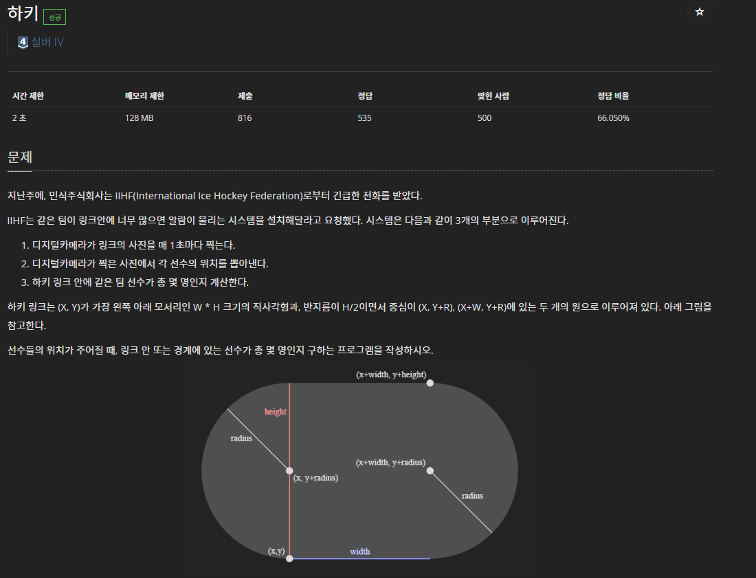 1.3 (x + width - px)^2 + (y+h/2 - py)^2 <= (h/2)^2 (오른쪽 원 내에 하키선수가 존재하는 지)